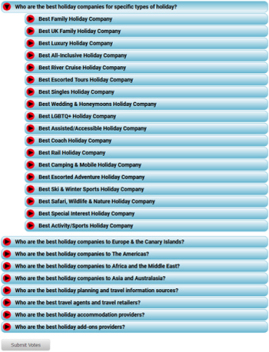 In all events an email will have been sent to the registered email address titled “Your British Travel Awards Voter Password”. Go to the log-in section at the bottom of the voting form and enter your email address and password to access the voter record.