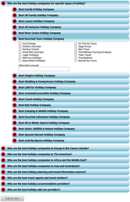 Do not offer an independent prize or incentive, conditional upon or associated with, voting for a specific company or brand in the British Travel Awards. |